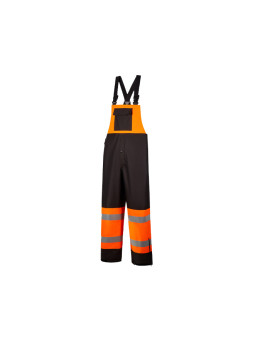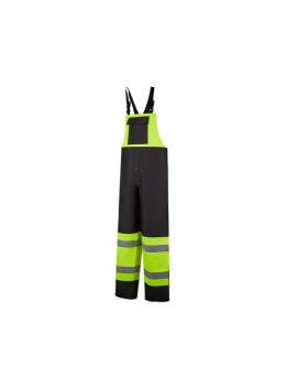 High Viz Rain Pants #739C-EPERFORMANCE FEATURES: 2 wide reflective stripes. Boot zippers with adjustable hook and loop ankle straps. 2 pass-through slits for front pocket...