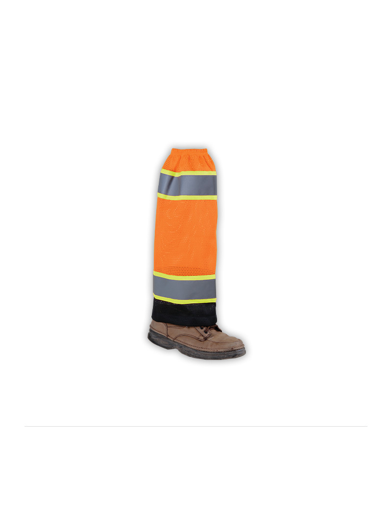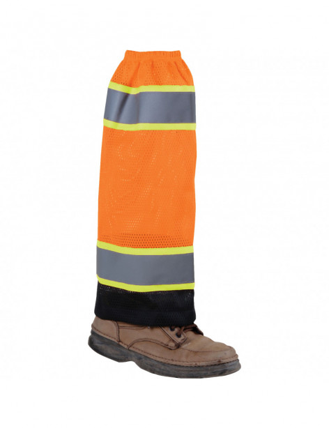 PERFORMANCE FEATURES: Adjustable top an dbottom hool and loop closure for easy access and personalized fit. Black bottom prevents stains and helps keep clean appearance. Features two 2" wide reflective stripes (360 degree horizontal leg stripes) Sold by the pair.