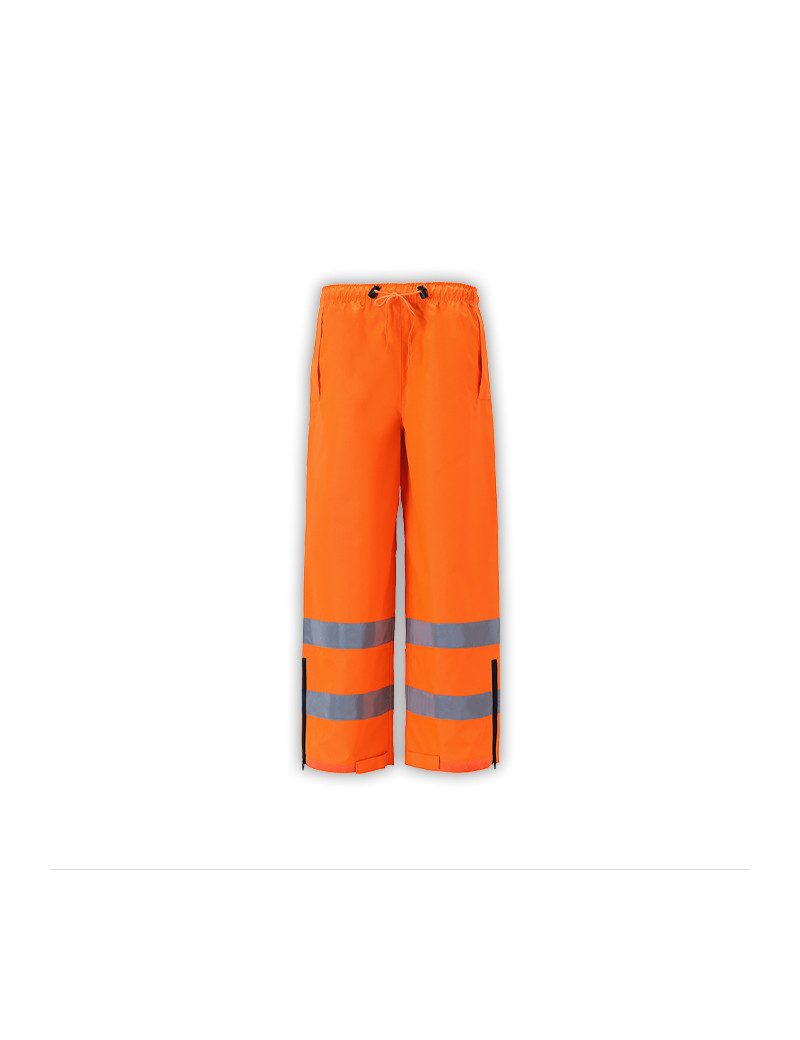 PERFORMANCE FEATURES: 2 wide reflective stripes. Boot zippers with adjustable hook and loop ankle straps. 2 pass-through slits for front pocket access. Elastic waistband with drawstring and cord lock.