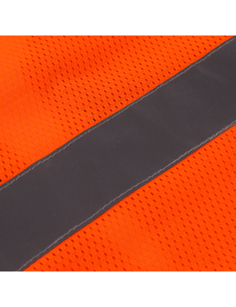 PERFORMANCE FEATURES: Zipper front closure. 2 wide reflective stripes. 4 pockets total: 2 pen/cell phone, 2 lower pockets for tools.