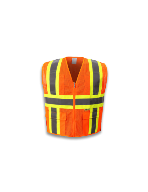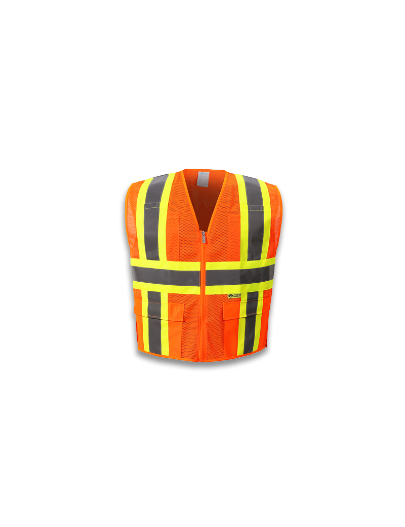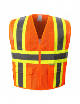PERFORMANCE FEATURES: Zipper front closure. 2 wide reflective stripes on 4 wide contrast color tape. 6 pockets total: 2 pen/tool pockets, 2 flap pockets and 2 inside pockets.