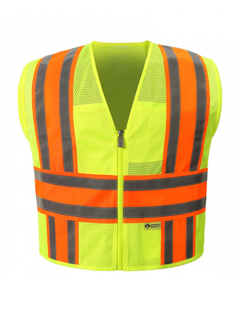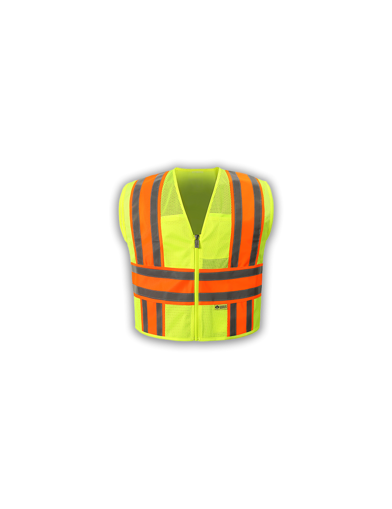 PERFORMANCE FEATURES: Zipper front closure. Two 1 wide reflective stripes on 4.5 wide contrasting tape in split-trim design. 4 pockets total: 2 outside utility pockets and 2 pen/tool pockets.