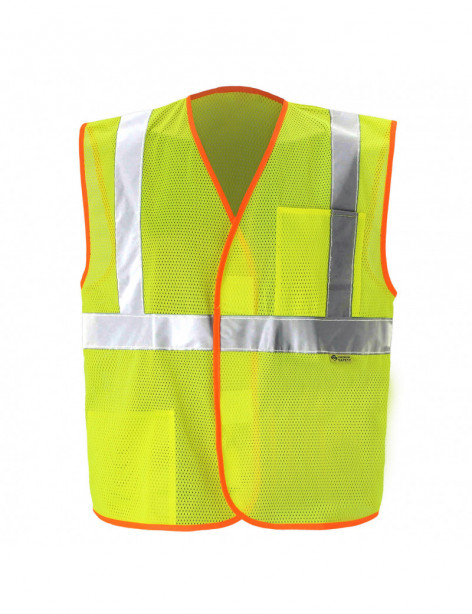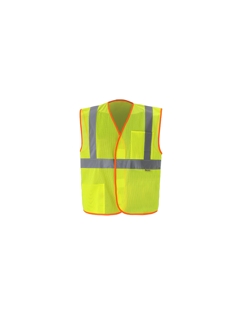 PERFORMANCE FEATURES: Hook and loop front closure. 2 wide reflective stripes and contrast color piping. 2 pockets total: 1 chest pocket for pen/tool, 1 inside lower pocket.