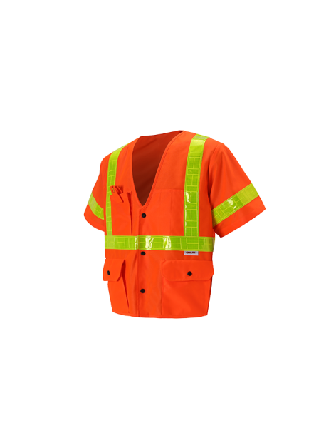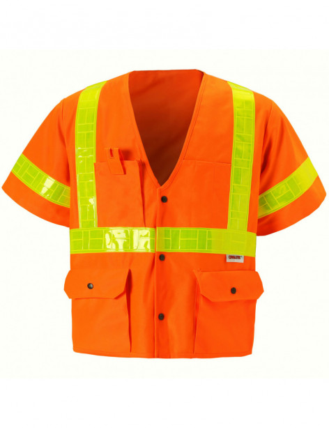 PERFORMANCE FEATURES: Snap front closure. 2 wide Oralite® tapes. 4 pockets total: 1 pen/tool pocket, 1 cell phone pocket, and 2 flap gusset pockets.