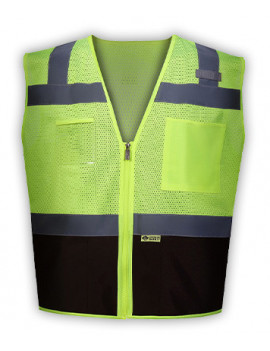 PERFORMANCE FEATURES: Zipper front closure. 2 wide reflective stripes on 4 contrast trim. 6 pockets total: 1 clear ID flap pocket (4x4), 1 two tier chest pocket with pen/tool slots, 2 lower flap gusset pockets, 2 inside tablet pockets with load bearing straps. 2 mic tabs.