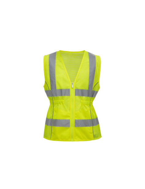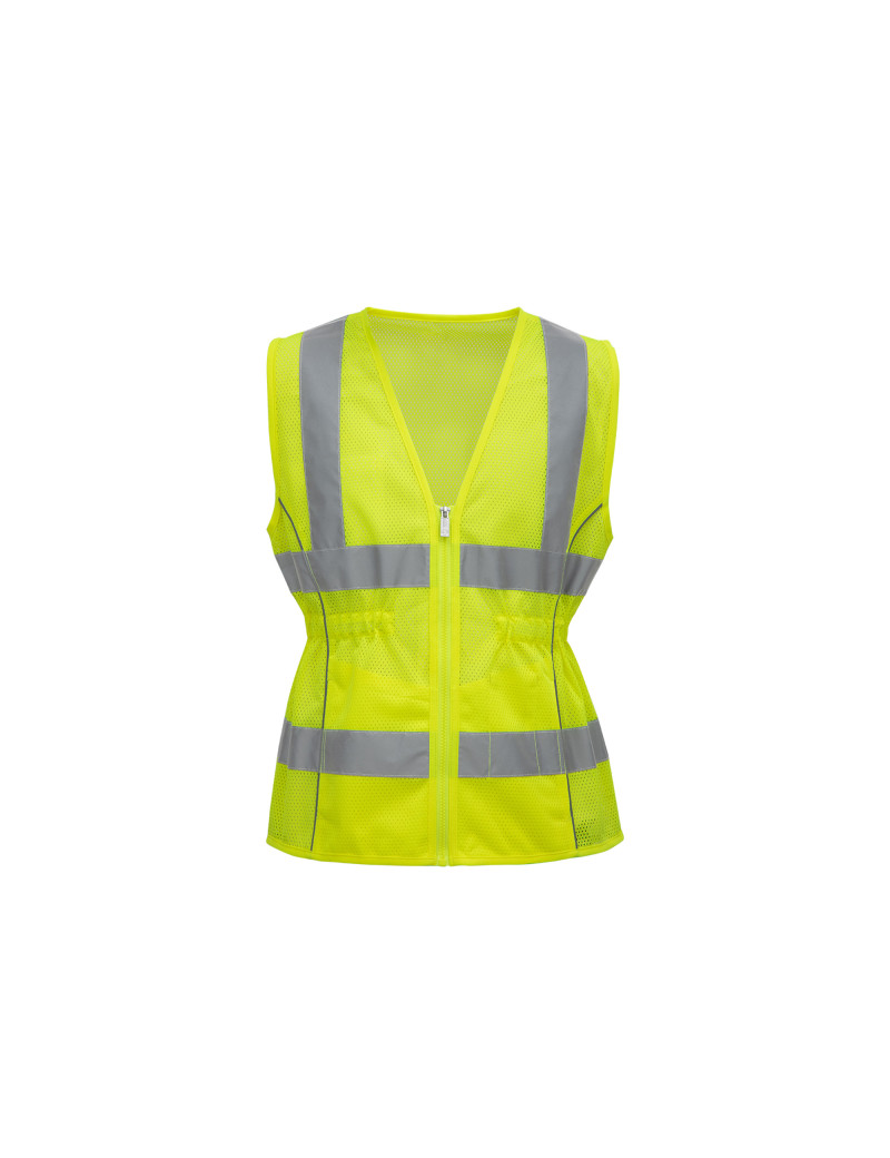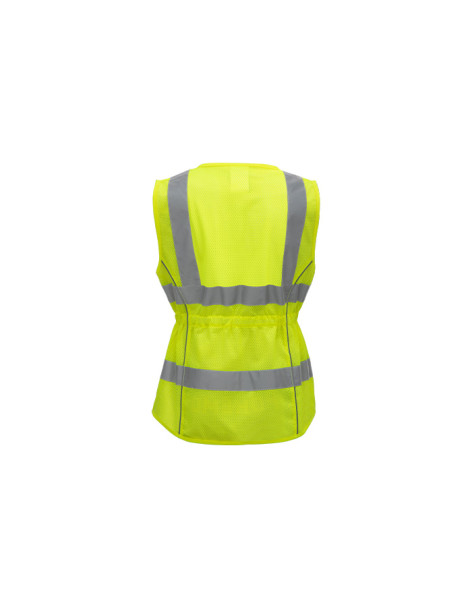 Zipper front closure. 2" wide reflective stripes. Reflective trim down sides. 2 hidden slash pockets. 1 two-tier inside pocket. Waist cinches for better fit.