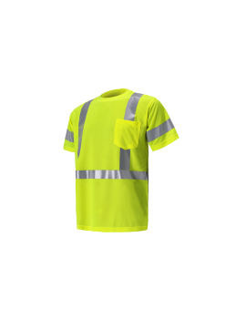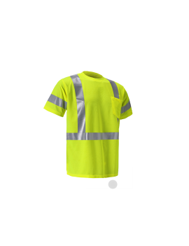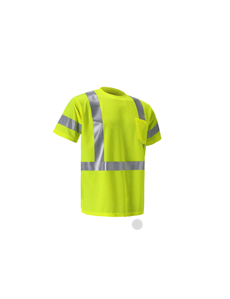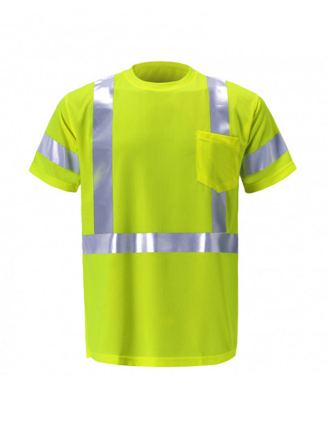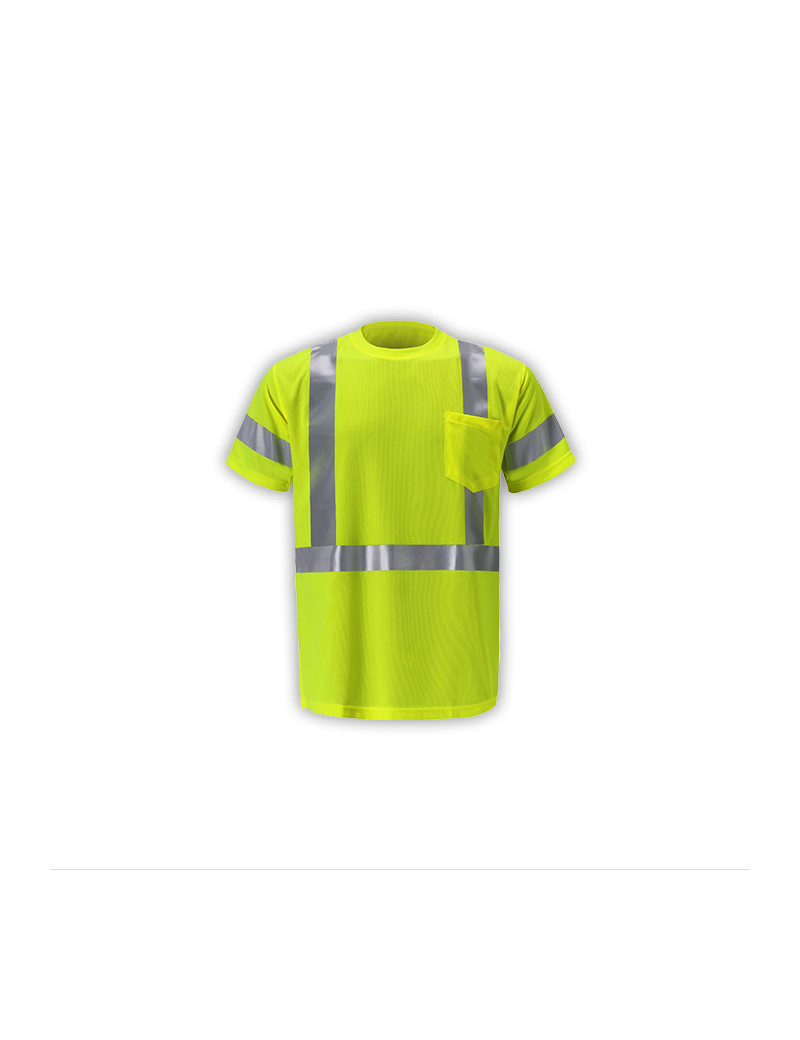 PERFORMANCE FEATURES: Breathable polyester that wicks away moisture. One left chest pocket. 2 wide solid reflective stripes (heat pressed).