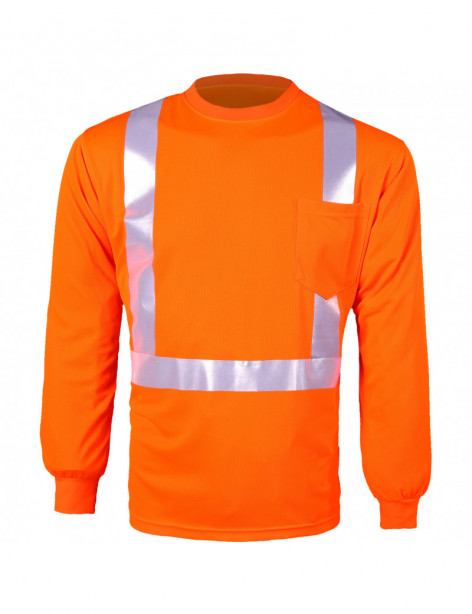 PERFORMANCE FEATURES: Breathable polyester that wicks away moisture. One left chest pocket. 2 wide segmented reflective stripes (heat pressed).