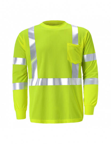 PERFORMANCE FEATURES: Breathable polyester that wicks away moisture. One left chest pocket. 2 wide solid reflective stripes (heat pressed).