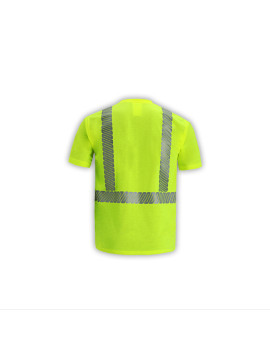 [#TS103C-2] High Viz Short Sleeve Jersey T-shirtPERFORMANCE FEATURES: Breathable polyester that wicks away moisture. One left chest pocket. 2 wide segmented reflective stripes (heat pressed).