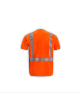 [#TS105C-2] High Viz Short Sleeve Jersey T-shirtPERFORMANCE FEATURES: Breathable polyester that wicks away moisture. One left chest pocket. 2 wide segmented reflective stripes (heat pressed).