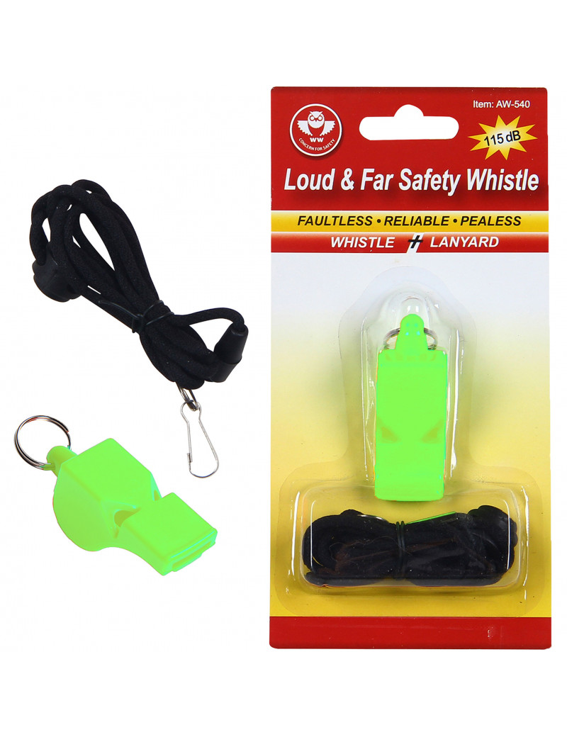 PERFORMANCE FEATURES: Pealess whistle has 3 chambers for high pitch sound. Weather and water resistant. Includes lanyard with adjustable slider and breakaway clasp.