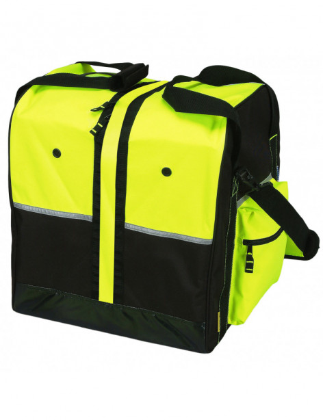 PERFORMANCE FEATURES: Step in style gear bag for quick jump in and suit up. Sturdy webbing handles with hook and loop closure and removable shoulder strap. ID pocket and reflective lining for increased visibility. Zip around closure compartment with 4 ventilation holes and 2 outside pockets. Packed 12 per case.
