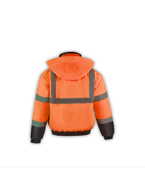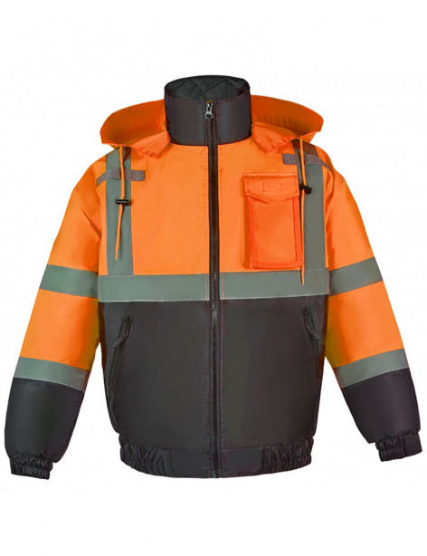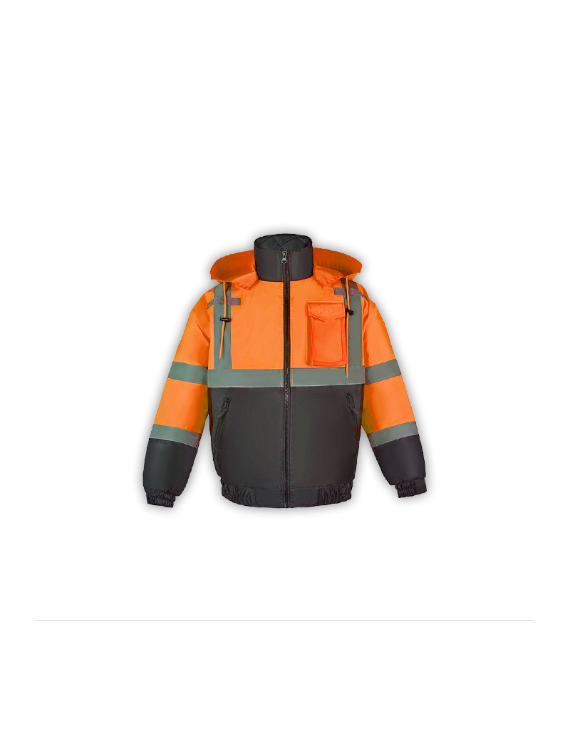 PERFORMANCE FEATURES: 2 wide reflective stripes and 2 mic tabs. Heavy duty zippers on front closure and pockets. Rib knit waistband and cuffs with adjustable hook and loop strap on wrist cuffs. Detachable hood with drawstring and stoppers. 5 pockets total: 1 clear ID pocket, 2 hand warmer pockets, 1 inner left chest pocket, and 1 left sleeve pen/tool pocket.