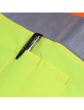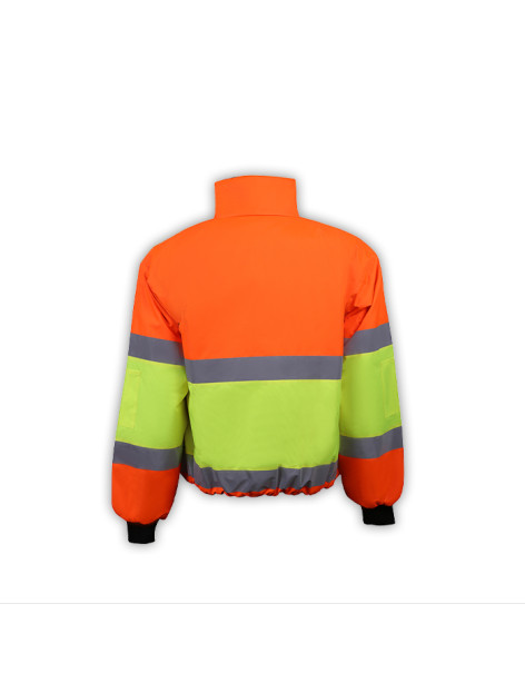 PERFORMANCE FEATURES: 2 wide reflective stripes. Heavy duty zippers on front closure and pockets. Rib knit waistband and cuffs. Reversible: Black interior. Detachable hood with drawstring and stoppers. 8 pockets total: 2 slash pockets, 2 zipper chest pockets, Reverse side: 2 slash pockets, 2 chest pockets.
