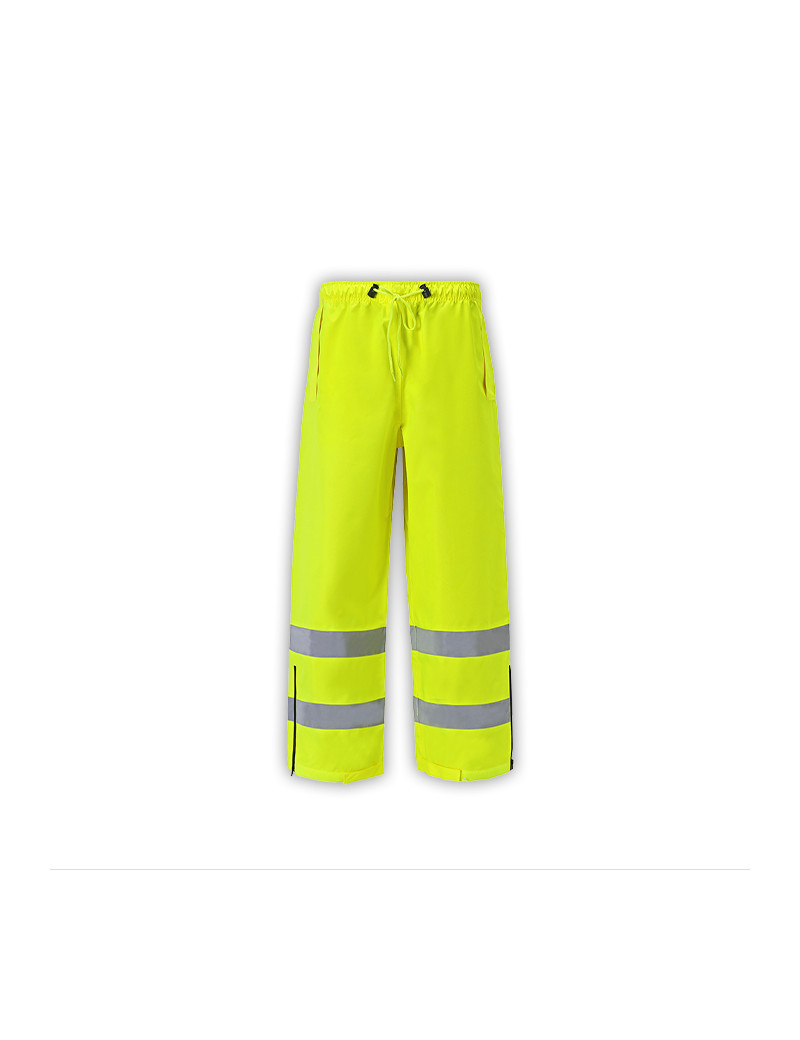 PERFORMANCE FEATURES: 2 wide reflective stripes. Boot zippers with adjustable hook and loop ankle straps. 2 pass-through slits for front pocket access. Elastic waistband with drawstring and cord lock.