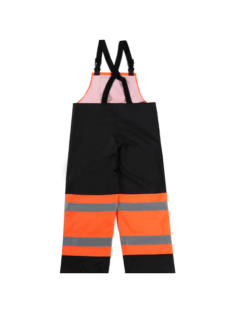PERFORMANCE FEATURES: 2 wide reflective stripes. Adjustable elastic suspenders with quick release buckles. Boot zippers and adjustable hook and loop ankle straps. Hook and loop waist strap adjustment. Button snap fly closure. Water proof with heat sealed seams.