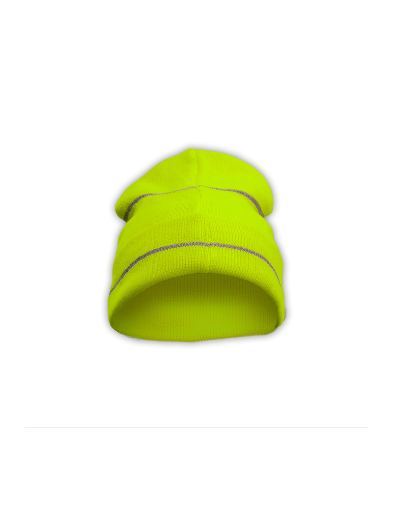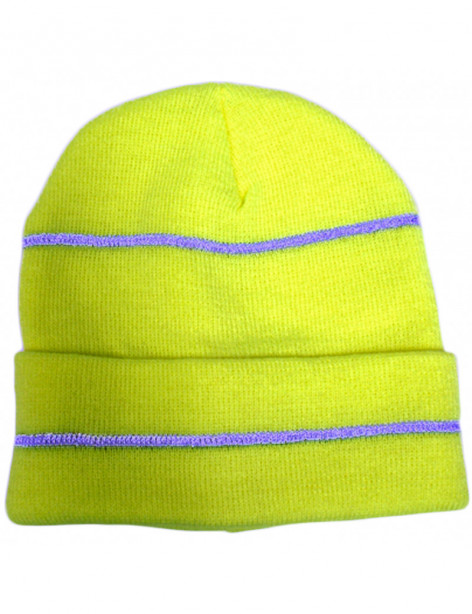 Hi Viz Knitted Cap With Reflective Stripes