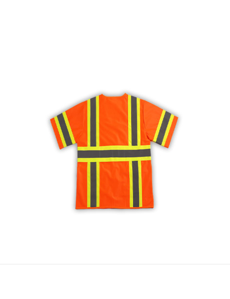 PERFORMANCE FEATURES: Zipper front closure. 2 wide reflective stripes on. 4 wide contrasting tape. 6 pockets total: 2 pen/tool pockets, 2 flap pockets, and 2 inside pockets.