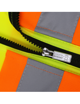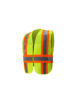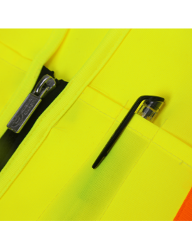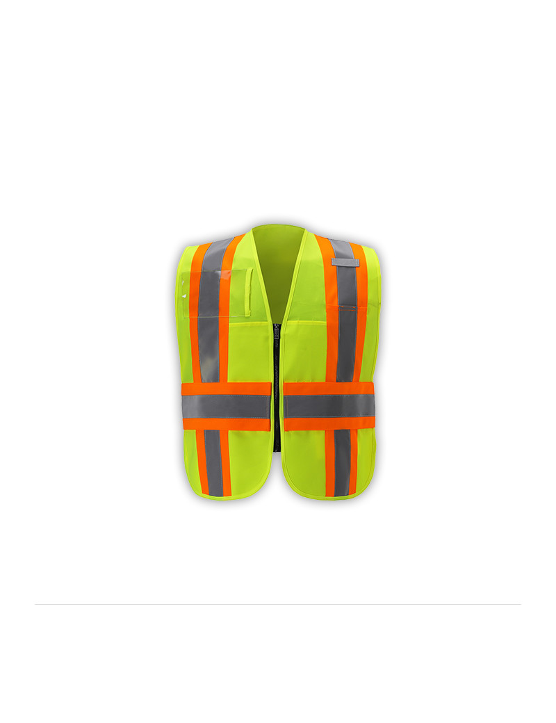 PERFORMANCE FEATURES: Zipper front closure. Adjustable hook and loop side panels. 2 wide reflective stripes on 4.5 wide contrasting tape in split-trim design. Clear plastic card holders on front (3.5 x 5.5) and back (4.5 x 11.5). 5 pockets total: 2 pen/tool pockets, 1 large radio pocket, and 2 inside pockets.
