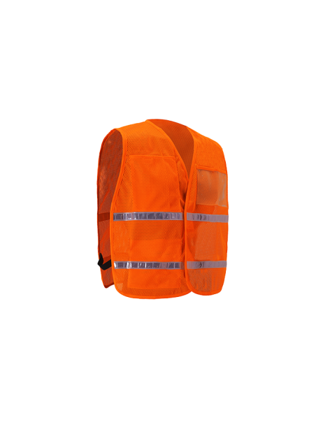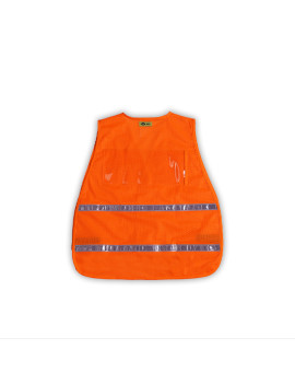 PERFORMANCE FEATURES: Hook and loop front closure and elastic side closure. 1 wide reflective stripes on front and back. Clear plastic card holders on front (3.5 x 5.5) and back (4.5 x 11.5). 2 pockets total: 1 right chest pocket, 1 inside patch pocket.