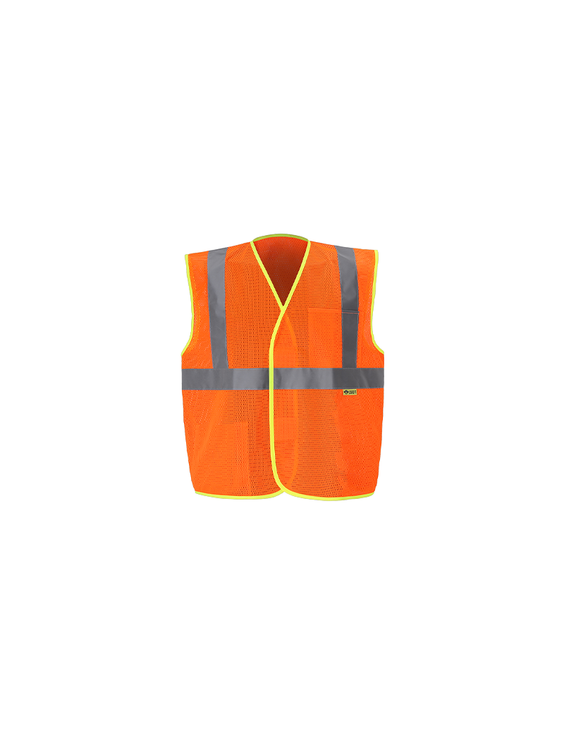 PERFORMANCE FEATURES: Hook and loop front closure. 2 wide reflective stripes and contrast color piping. 2 pockets total: 1 chest pocket for pen/tool, 1 inside lower pocket.