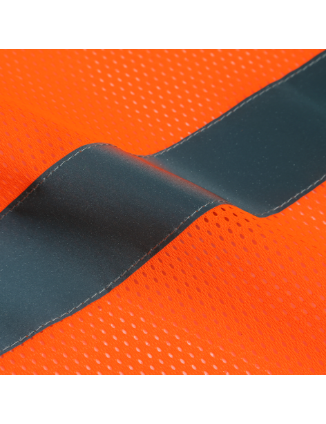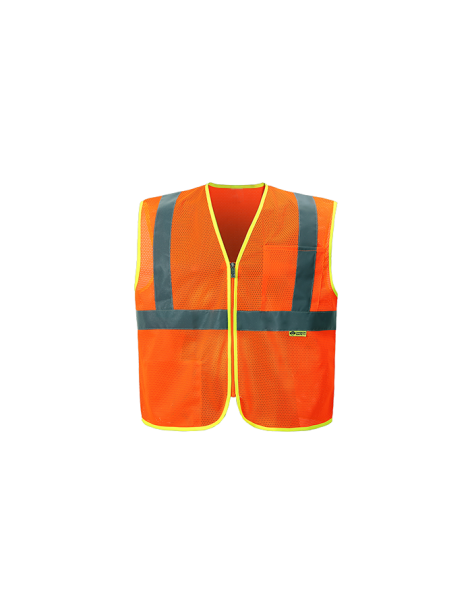 PERFORMANCE FEATURES: Zipper front closure. 2 wide reflective stripes and contrast color piping. 2 pockets total: 1 chest pocket for pen/tool, 1 inside lower pocket.