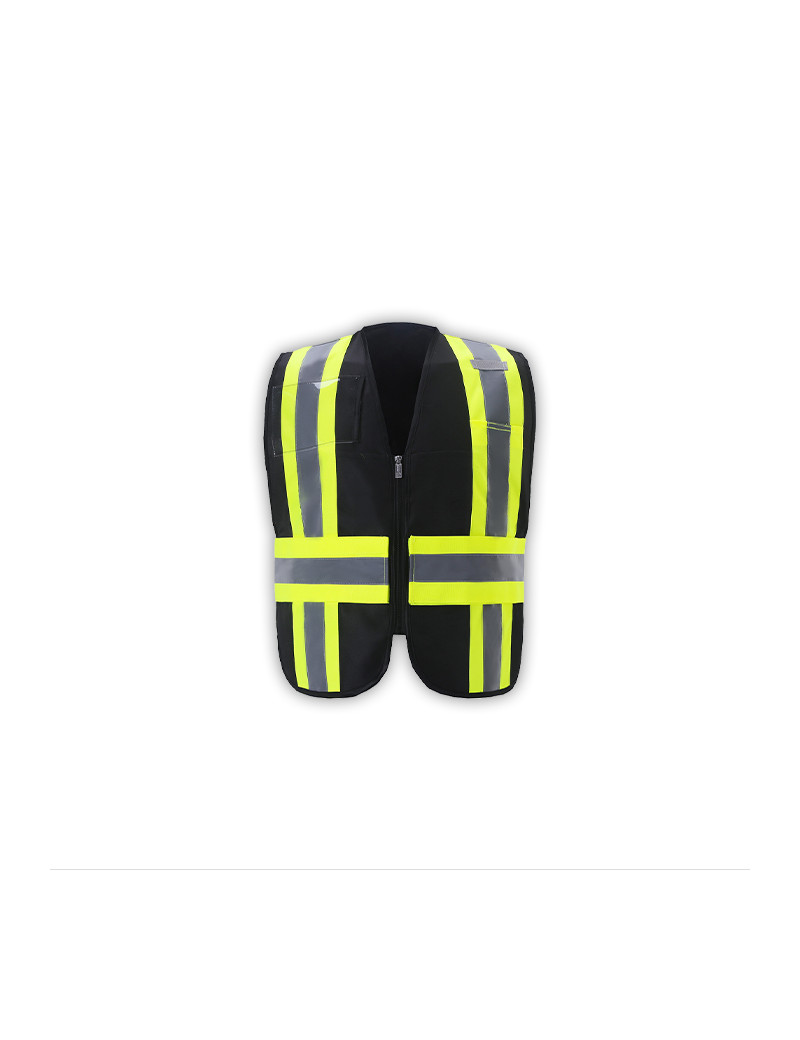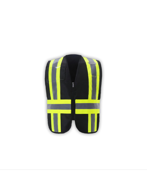 PERFORMANCE FEATURES: Zipper front closure. Adjustable hook and loop side panels. 2 wide reflective stripes on 4.5 wide contrast color tapes. Clear plastic card holders on front (3.5 x 5.5) and back (4.5 x 11.5). 2 pockets total: 1 right large radio pocket and 2 inside pockets.