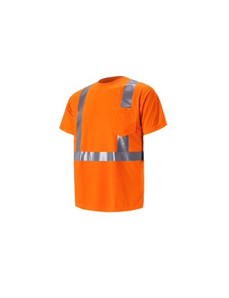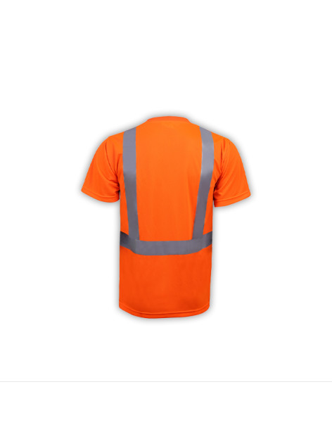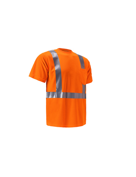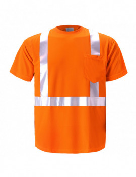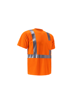 PERFORMANCE FEATURES: Breathable polyester that wicks away moisture. One left chest pocket. 2 wide solid reflective stripes (heat pressed).